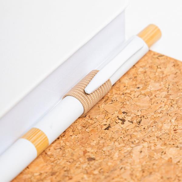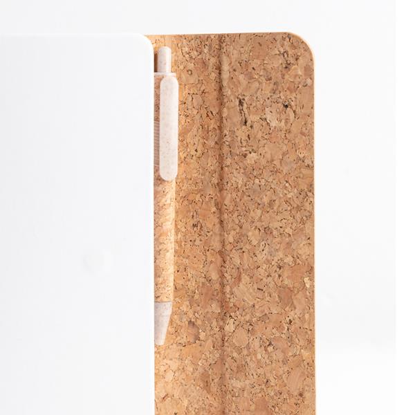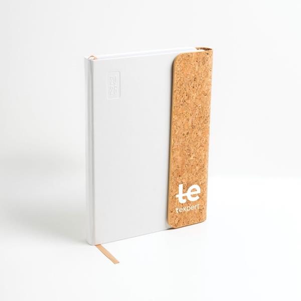 A Agenda Yuma A5 combina sofisticação e um toque natural, ideal para organizar o ano de 2026 com estilo. A sua capa em PU com aba em cortiça confere um design moderno e ecológico, enquanto o fecho magnético assegura maior proteção. Inclui ainda fitilho marcador e suporte para esferográfica dentro da aba, para máxima funcionalidade.
