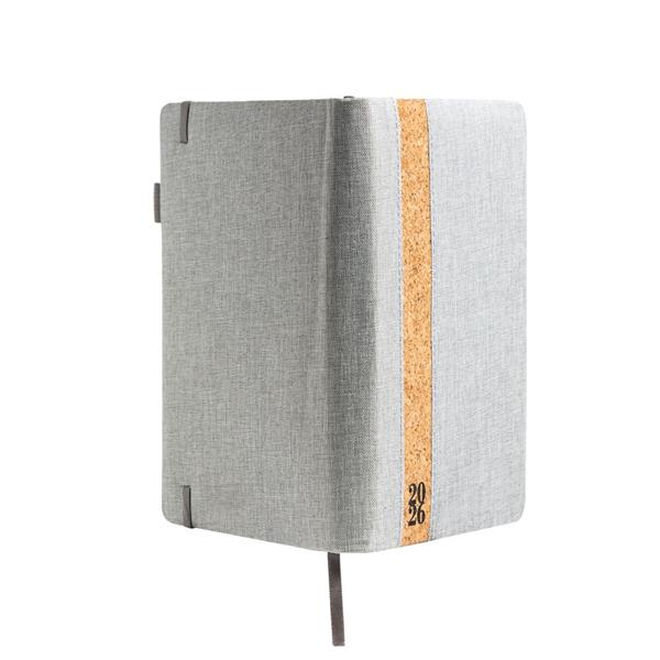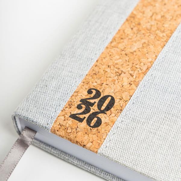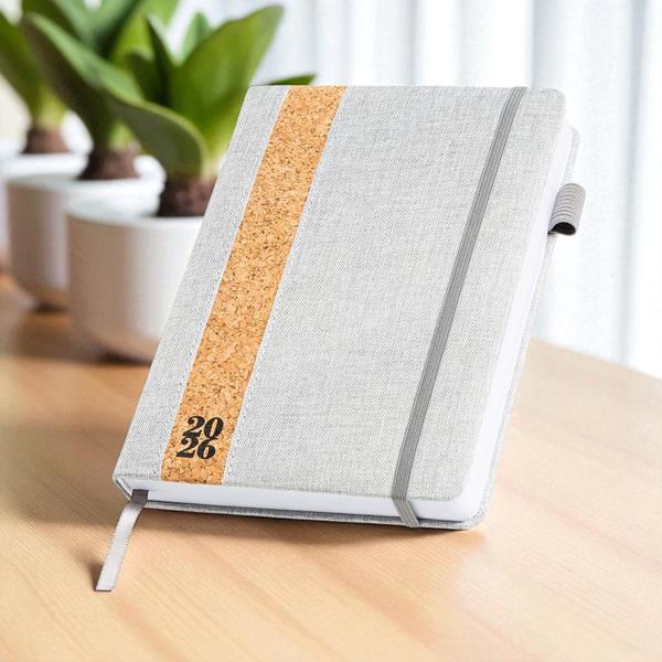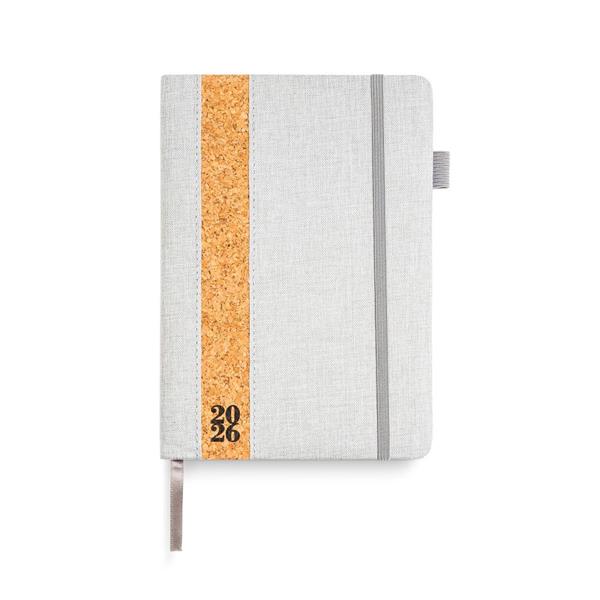 A Agenda Tokyo A5 distingue-se pelo seu design elegante e natural, combinando capa em linho e cortiça para um estilo moderno e sustentável. Inclui fitilho marcador, elástico de fecho e suporte para esferográfica, garantindo praticidade e segurança no uso diário.