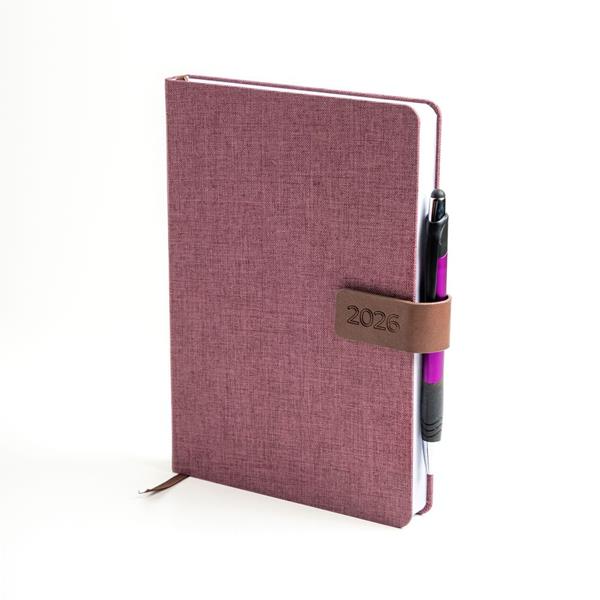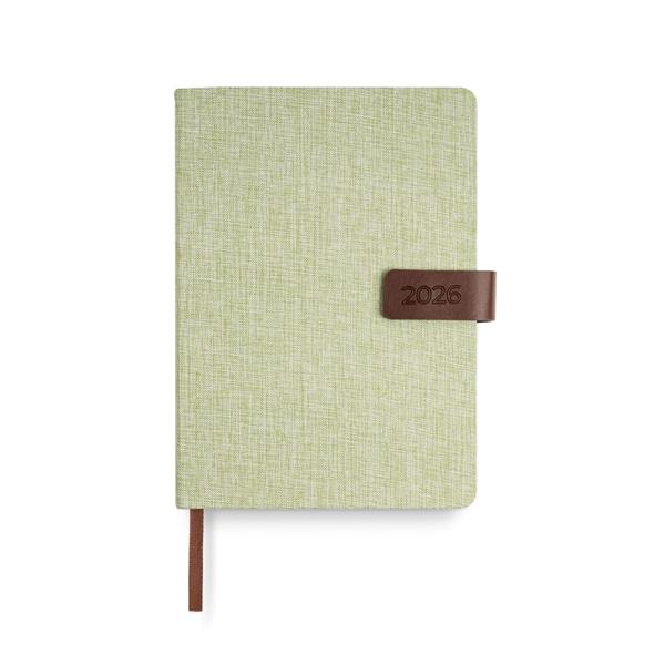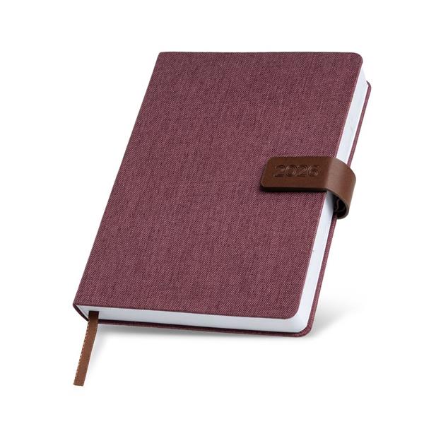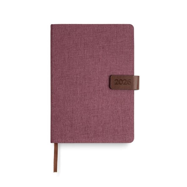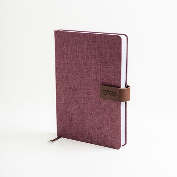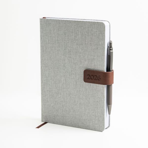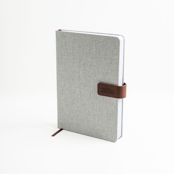 A Agenda San Marino A5 combina elegância clássica e funcionalidade, perfeita para acompanhar a sua organização ao longo de 2026. Apresenta capa em linho com detalhe em PU e fecho magnético, que garantem resistência e sofisticação. Inclui ainda suporte para esferográfica e fitilho à cor da agenda, para maior comodidade.