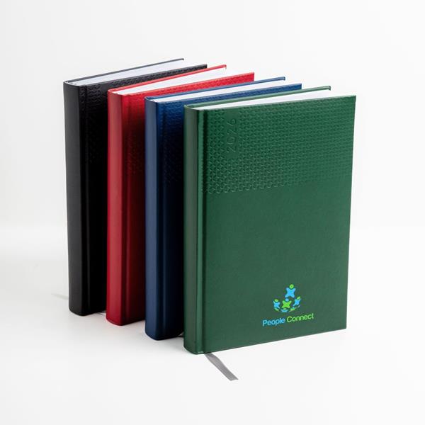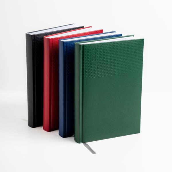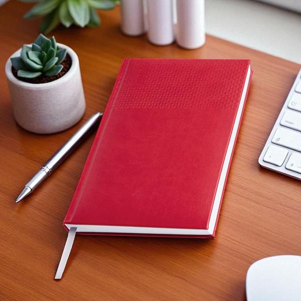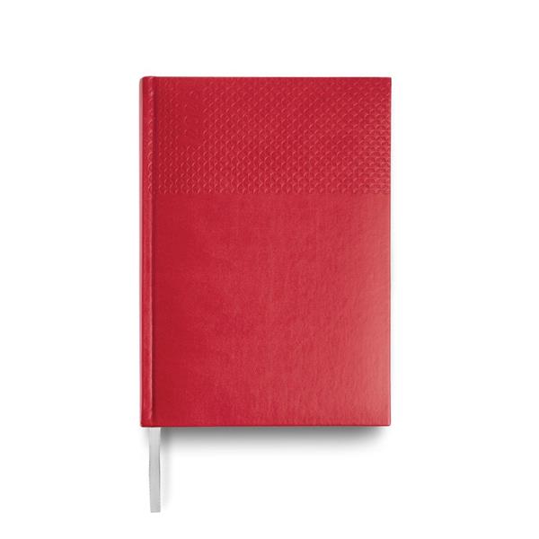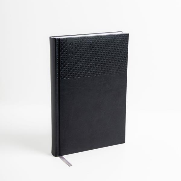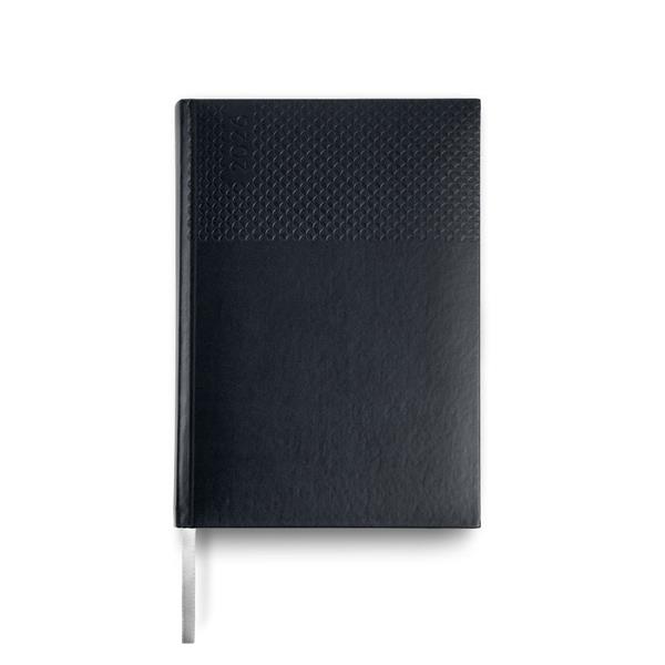 A agenda diária A5 Edessa combina elegância e funcionalidade num design sofisticado. Com capa em PU e fitilho prateado, é perfeita para um uso profissional ou pessoal com estilo.
