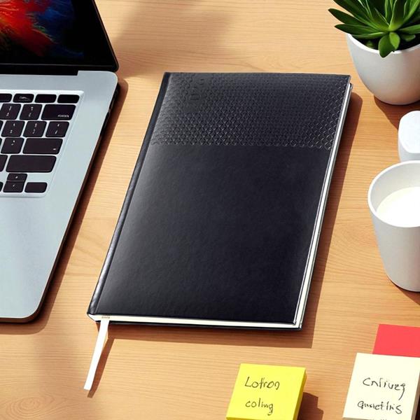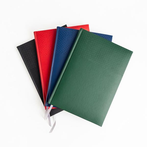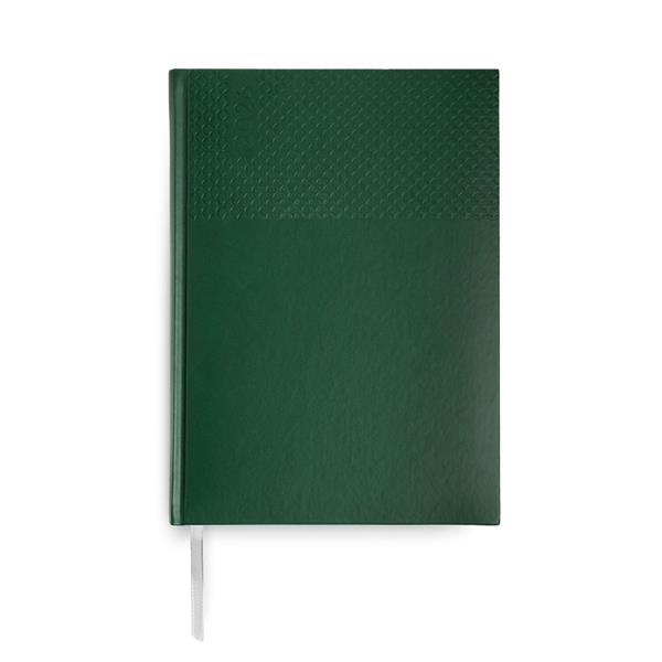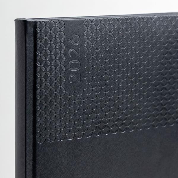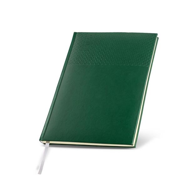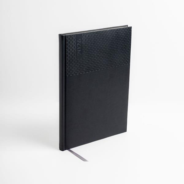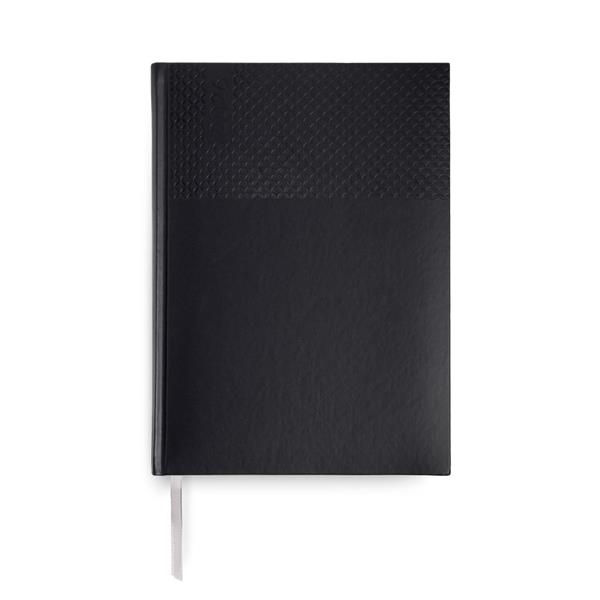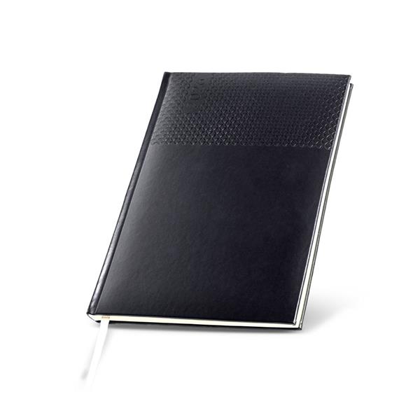 A agenda semanal A5+ Edessa alia elegância e praticidade num formato versátil. Com capa em PU e fitilho prateado, apresenta um design moderno e profissional.