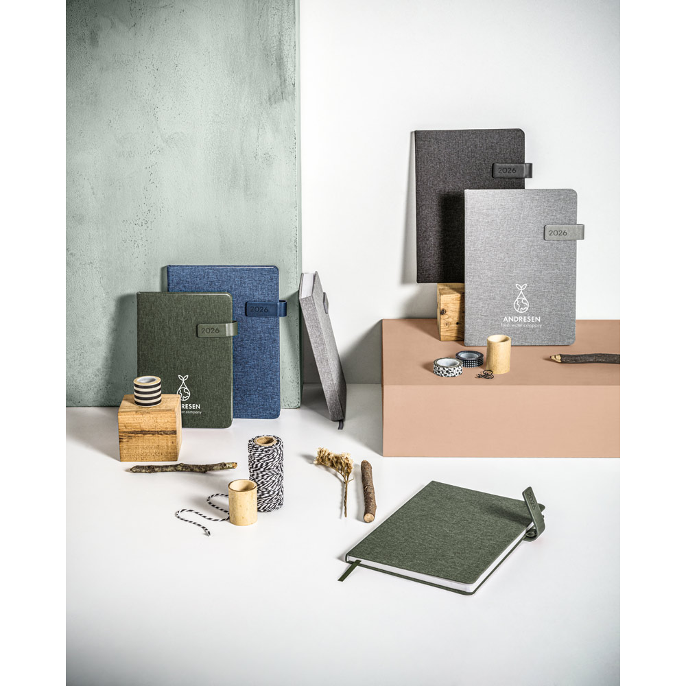 A ANDRESEN B5 é uma agenda em poliéster reciclado (100% rPET), pensada para empresas que valorizam sustentabilidade, qualidade e elegância nos seus brindes corporativos.