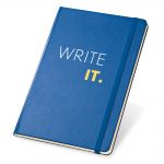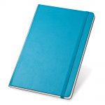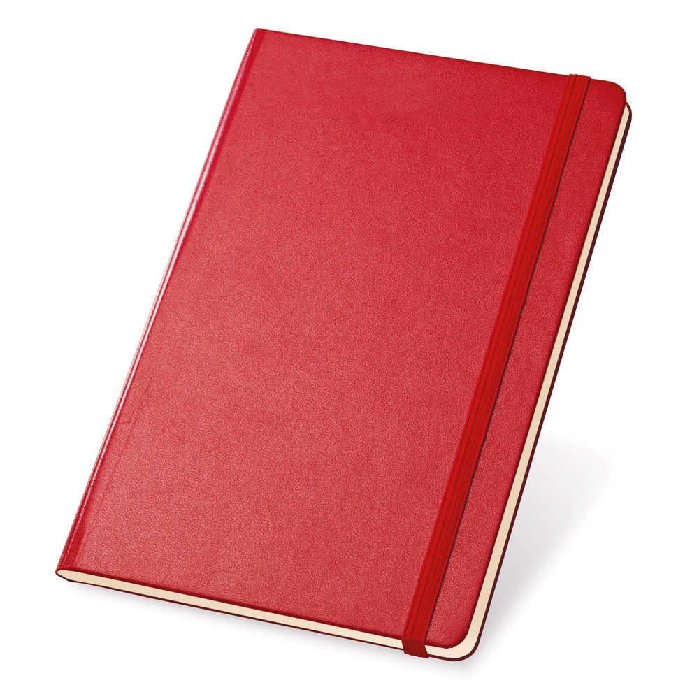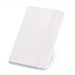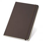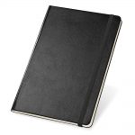 Bloco de notas A5 com 160 páginas pautadas em cor marfim, com bolso interior e capa rígida.