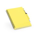 Bloco de notas. Capa rígida. Com 160 páginas pautadas de papel reciclado. Inclui esferográfica.