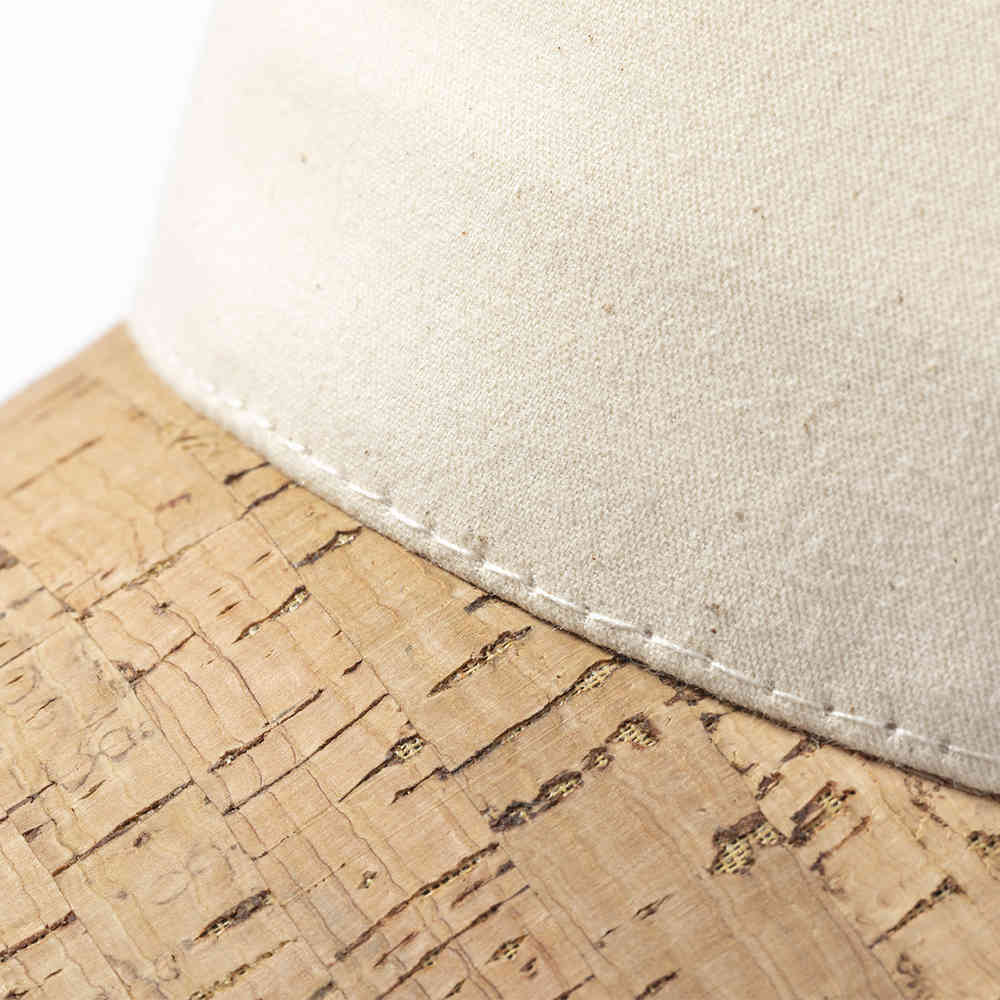 Boné de línha nature de 5 paíneis fabricado algodão orgânico, com viseira em cortiça natural. Com certificação GOTS (Global Organic Textile Standard, ou Norma Mundial de Têxteis Orgânicos) que garante que os tecidos são feitos de fibras orgânicas. Com fecho ajustável de velcro.