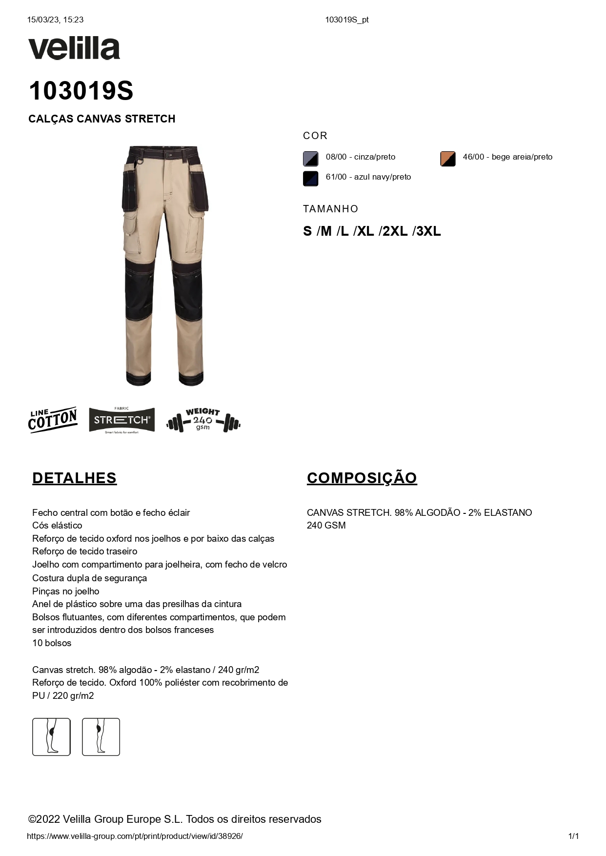 Reforço de tecido oxford nos joelhos e por baixo das calças