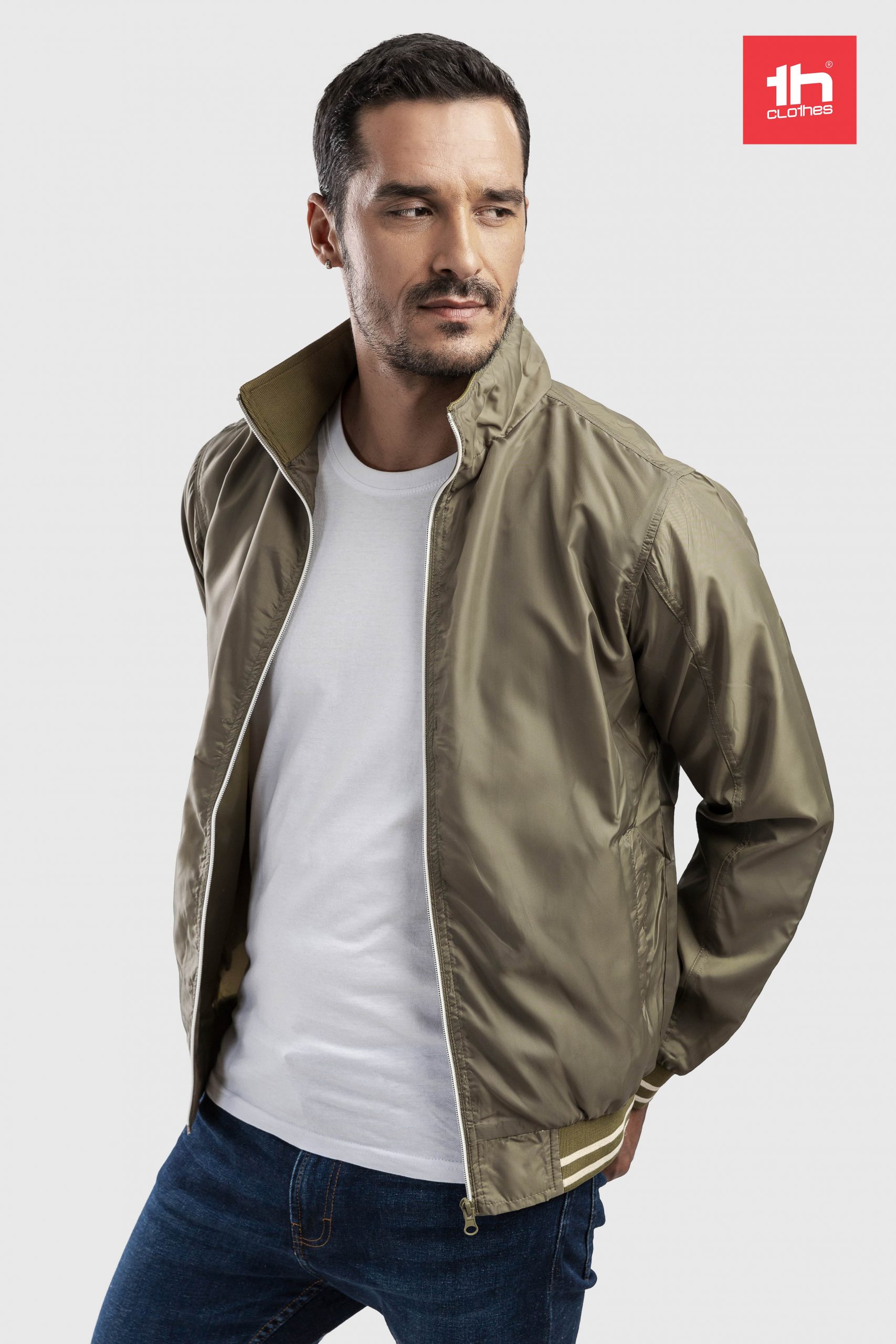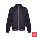 Casaco desportivo bicolor Oporto - Homem. 100% poliéster, corte moderno, leve e confortável. Detalhes bicolor nas mangas e cós. 2 bolsos frontais. 1 bolso nas costas para personalização fácil. Gramagem 160g/m².