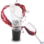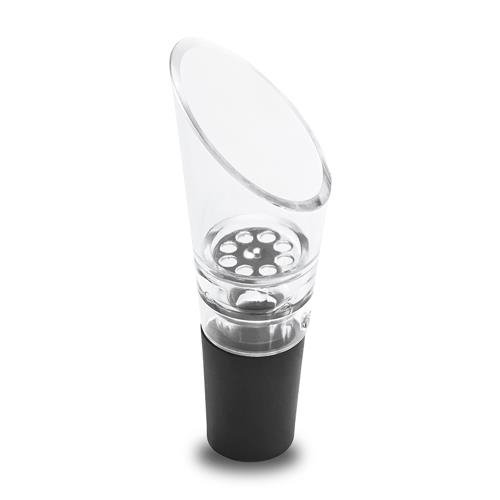 Decantador salva gotas. Para evitar que faça trapalhada na hora de servir o vinho, utilize este brinde. Ao encaixar no gargalo da garrafa, transforma-o numa bica que ajuda a evitar as gotas perdidas.