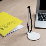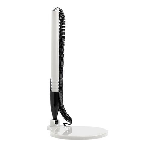 Esferográfica em plástico, com base de secretária. A base larga torna-se ideal para gravação.