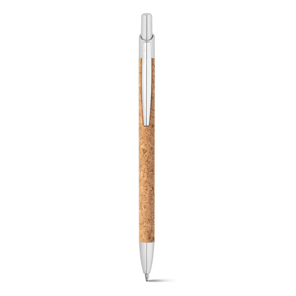 Esferográfica. Cortiça e alumínio. Fornecida com bolsa de oferta em cartão.
