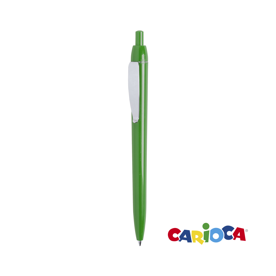 Esferográfica Glamour da Carioca, com mecanismo pulsante e corpo macio com acabamento numa variedade de cores vivas. Com clipe metálico e tinta azul.