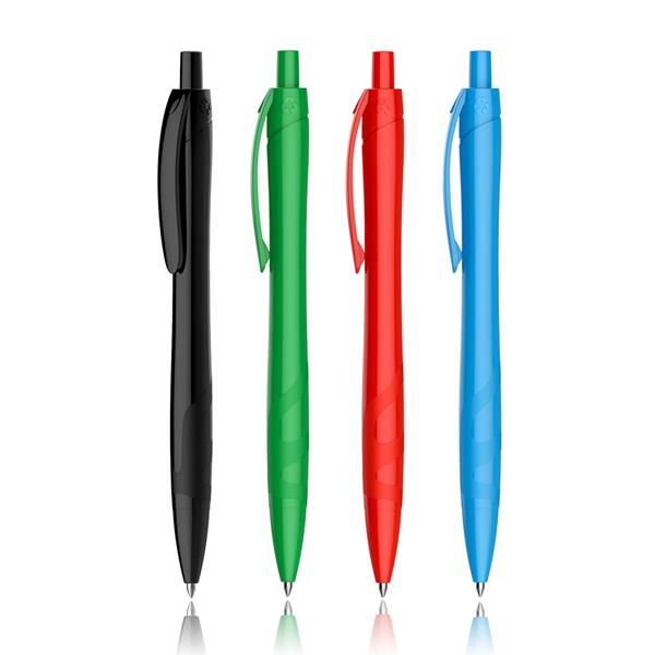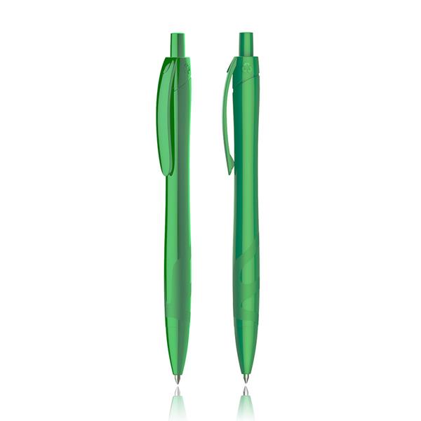 Esferográfica em RPET Skotty Uma esferográfica com uma só cor sólida, de sistema pulsar e escrita preta. Uma óptima solução para substituir o plástico regular e pensar no meio ambiente. Passo a passo, associe a sua marca à mudança que a Terra precisa!