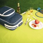 Mochila térmica para picnic em 600D, com bolsa térmica para garrafa, amovível. Compartimento principal almofadado com revestimento térmico. Bolso frontal forrado com 210D e almofadado. Inclui 6 talheres em aço inoxidável (2 garfos, 2 facas e 2 colheres), 2 pratos, 2 copos em PS e 1 saca-rolhas. A bolsa para garrafa e compartimento principal são totalmente forrados (com PEVA) e almofadados.