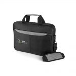Pasta para computador em 840D jacquard e 300D de alta densidade. Compartimento forrado e almofadado. Divisória almofadada para computador até 15.6''. Diversos bolsos interiores. Contém 3 bolsos frontais e banda para transporte em trolley. A pasta tem alça de ombro ajustável, com reforço almofadado.