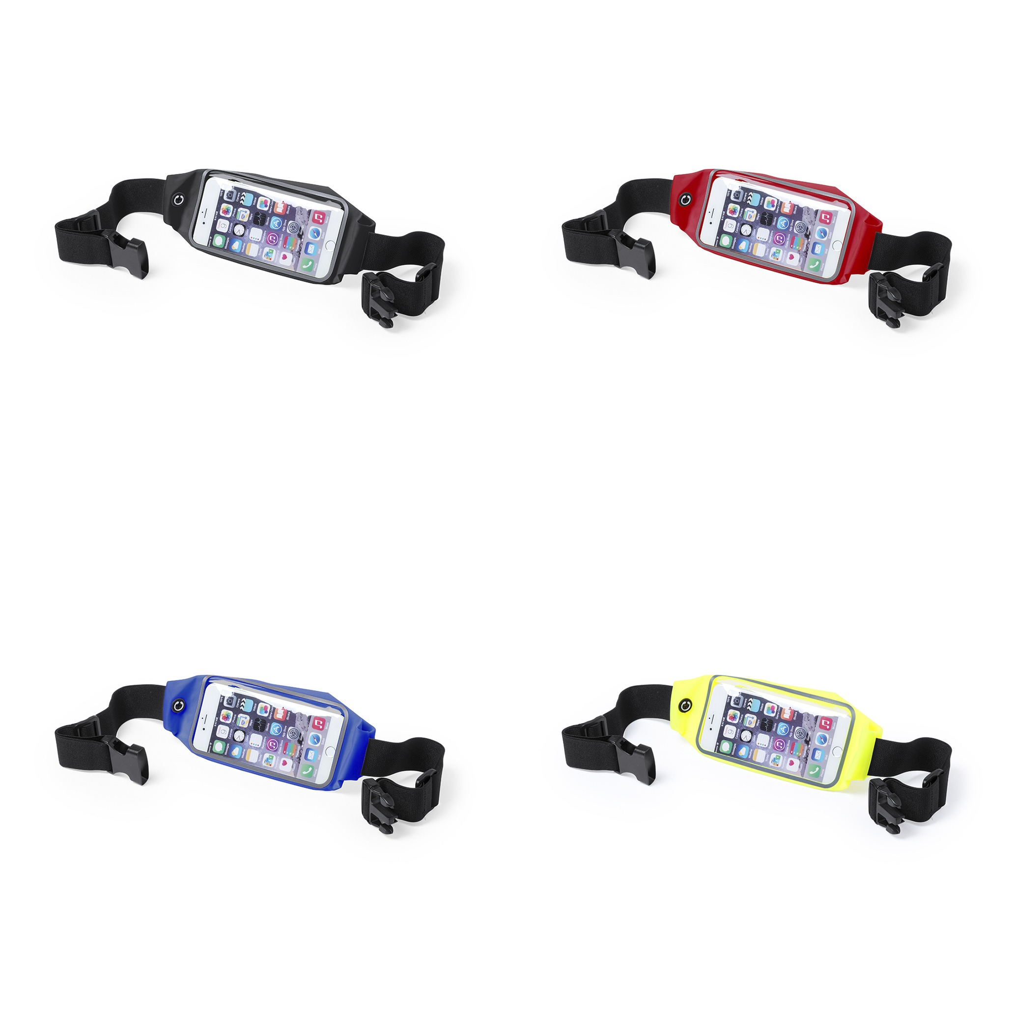 Bolsa de cintura de alta qualidade e resistente a salpicos de água em licra de várias cores. Bolso principal em PVC resistente com função táctil. Projetado para desportos e atividades de lazer. Com bolso com fecho de correr a condizer, saída para auscultadores e cintura elástica com fecho de clique ajustável.