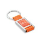 Porta-chaves em metal e webbing. O porta-chaves tem encaixe para doming e é fornecido em caixa de ofert
