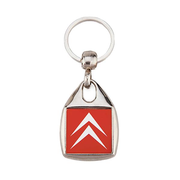 Porta-chaves MF-25 em metal com formato quadrado. Com 1 face (25x25mm) para inserção de papel e fecha com tampa em acrílico.