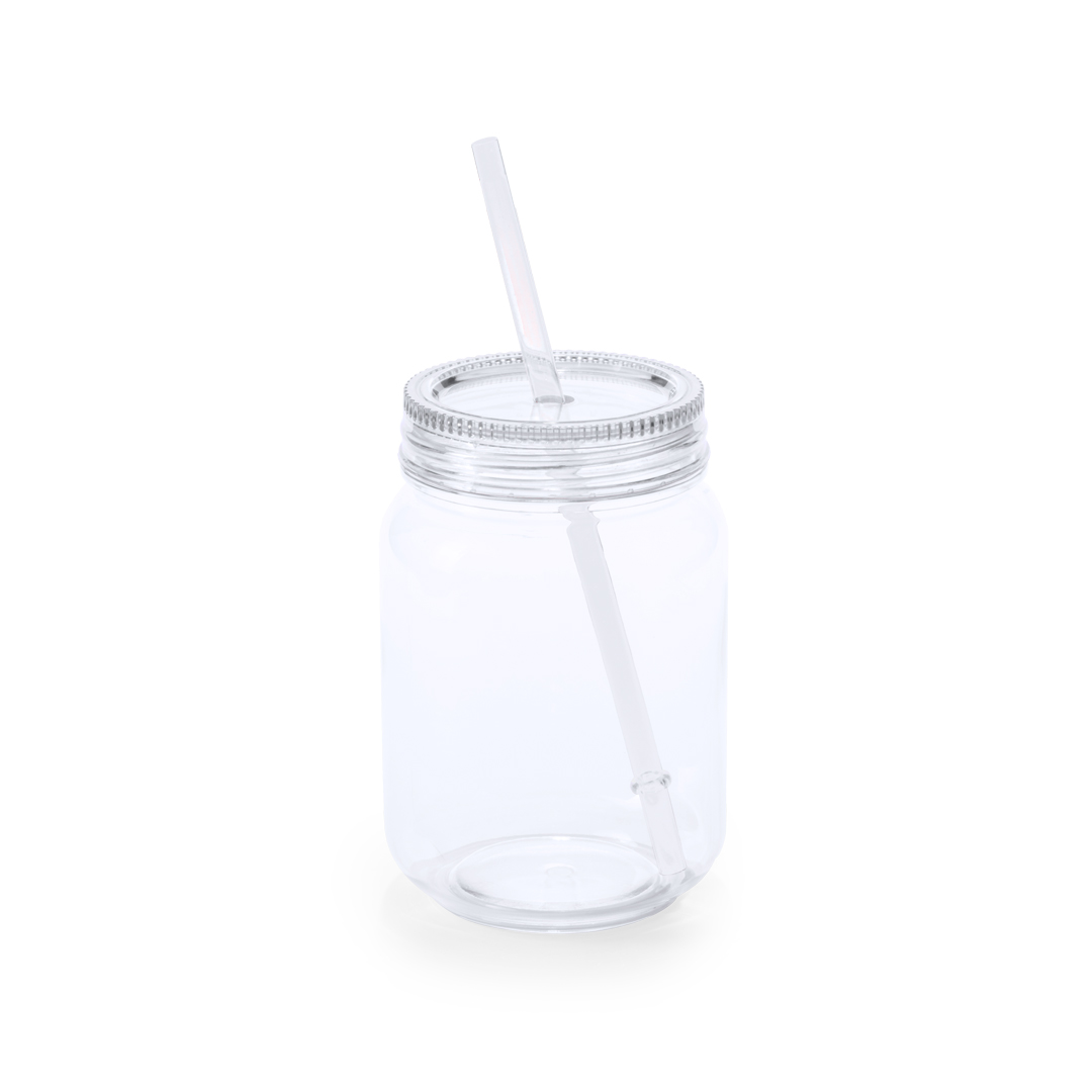 Recipiente PS de 600 ml com corpo transparente e acessórios em uma ampla gama de cores vivas. Com tampa de rosca e palha correspondente.