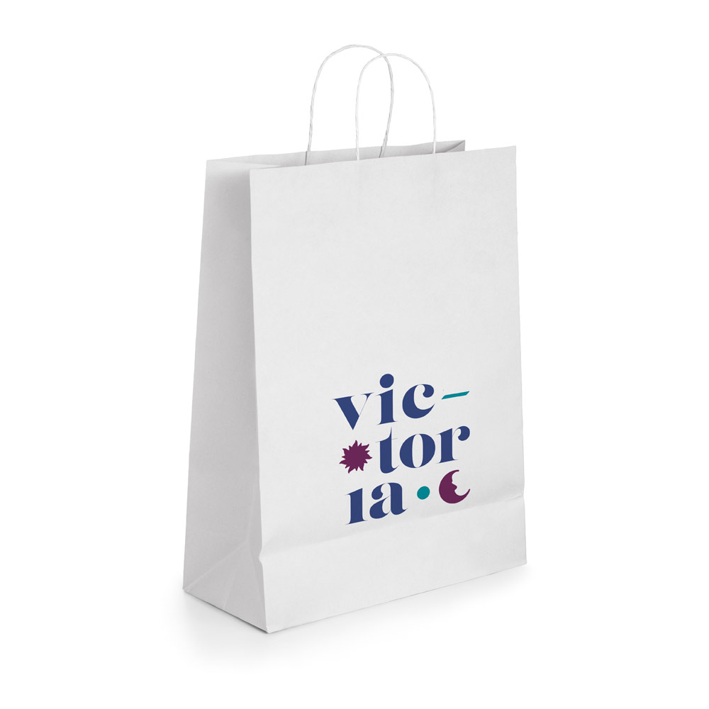 Saco em papel kraft (100 g/m²) com alça retorcida. Fabricado na Europa. Medidas: 320 x 410 x 110 mm