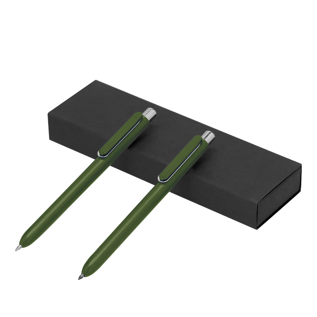 Conjunto composto por caneta e lápis eterno.