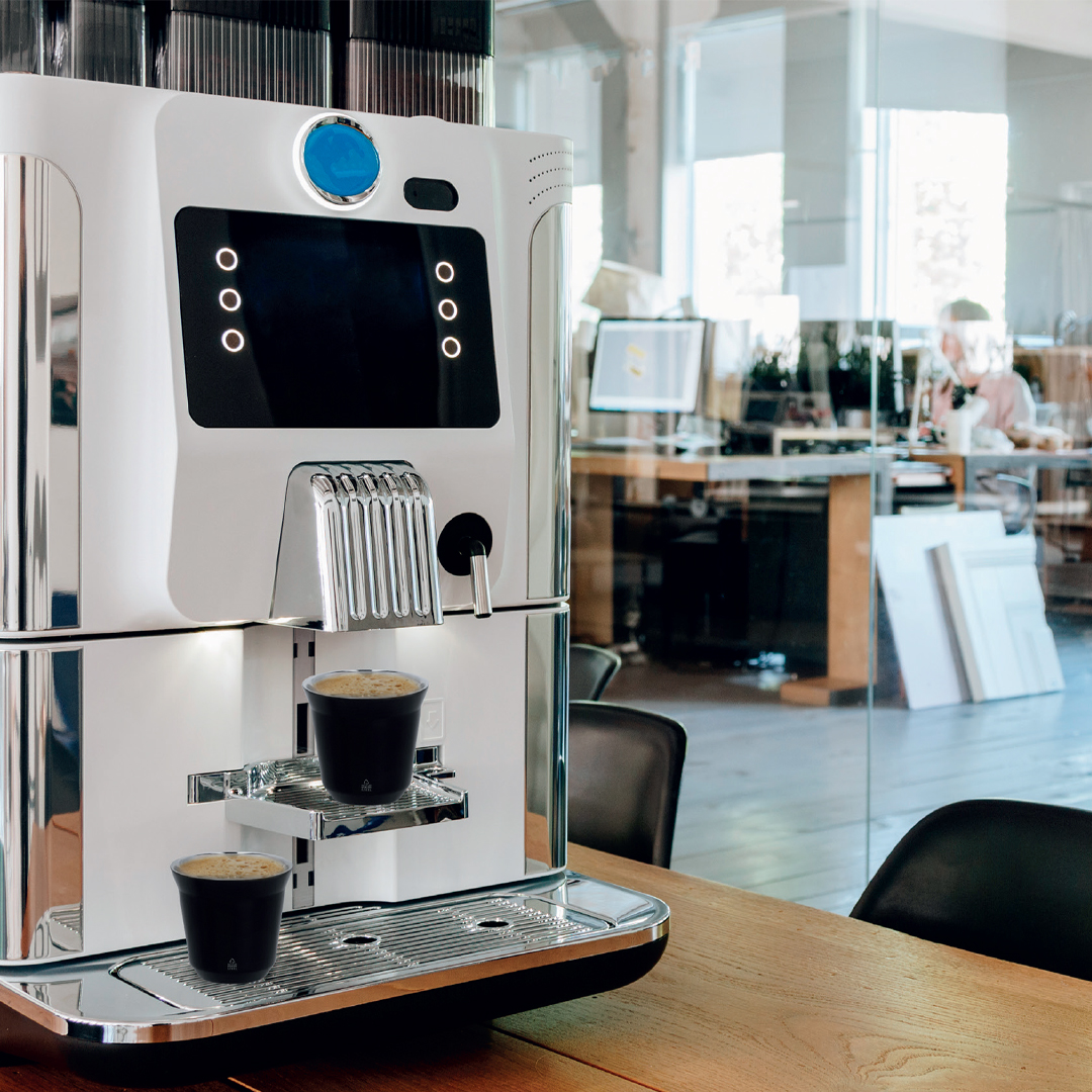O KODET é um conjunto elegante composto por dois copos de aço inoxidável reciclado, cada um com 80 ml de capacidade.
