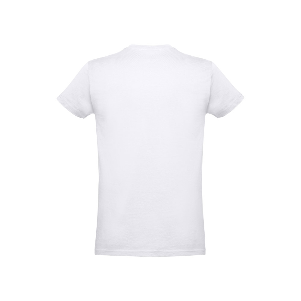 T-shirt para criança (unissexo) em malha jersey 100% algodão (190 g/m²) com fio de algodão cardado. Contém gola em Rib 1x1 com fita de reforço em jersey. Peça cortada e cosida com costura dupla nas mangas e parte inferior.