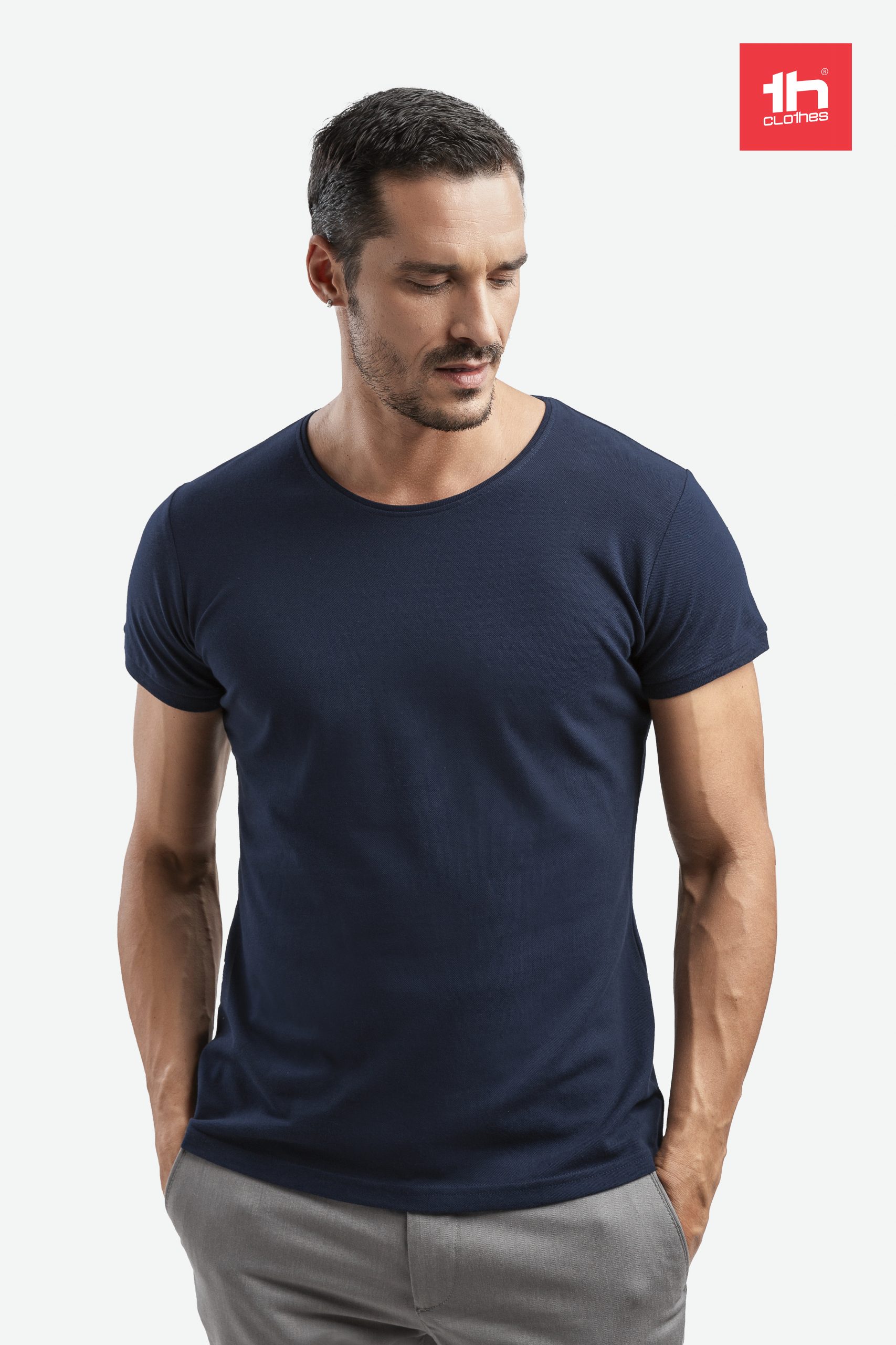 T-Shirt homem, malha piqué 100% algodão penteado. Fita de reforço na gola. Sem etiqueta na gola. Gramagem 195g/m².